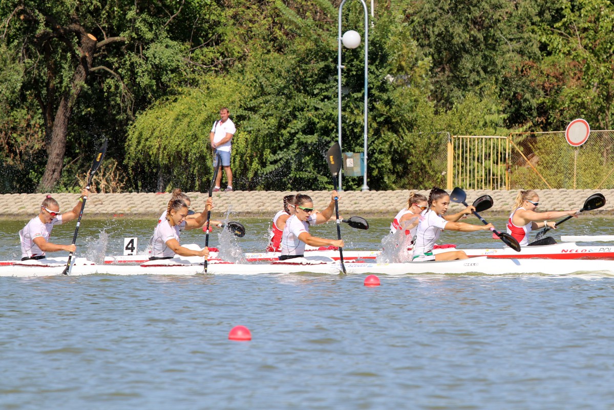 In Flatwater Racing sprint events, paddlers race on a straight course, each boat in a separate lane, over three different distances : 200 m, 500 m and 1000 m. In a kayak, the paddler is seated and uses a two-blade paddle, while in a canoe, the paddler is kneeling on one knee, and uses a single blade paddle. There are kayak events, for men and women, in single (K1), double (K2) and four boats (K4), and canoe events for men in single (C1), double (C2) and four boats (C4) and recently also for women.