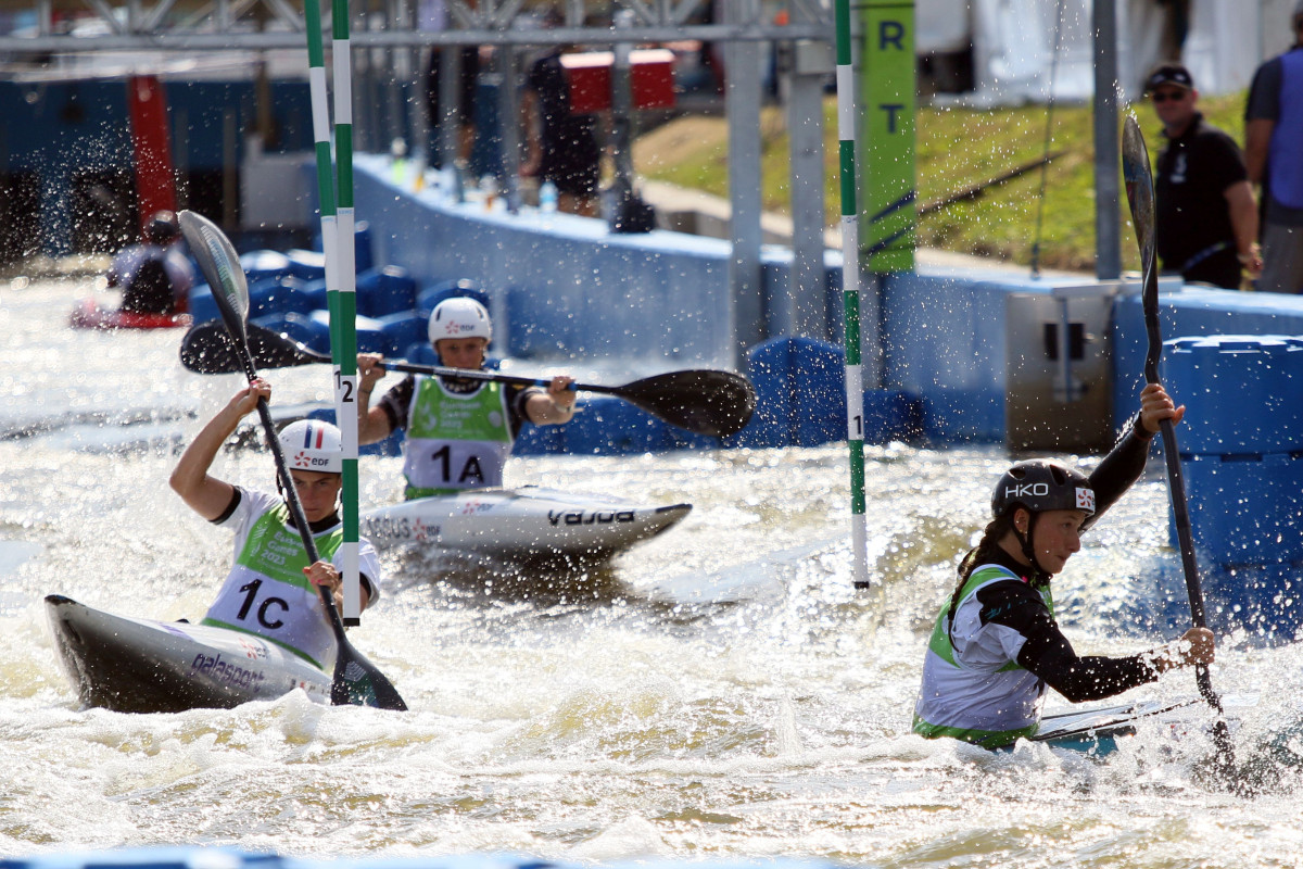 After the men's kayak teams, women took the stage and fought for the European Games medals. France won a gold medal in women's team event for the second time in a row as they were crowned team European Champions last year. There was a slight change in the French team compared to the season 2022, when Camille PRIGENT, Emma VUITTON and Romane PRIGENT took the European Champion titles, and now Marjorie DELASSUS stood on the top podium position together with Emma VUITTON and Camille PRIGENT.