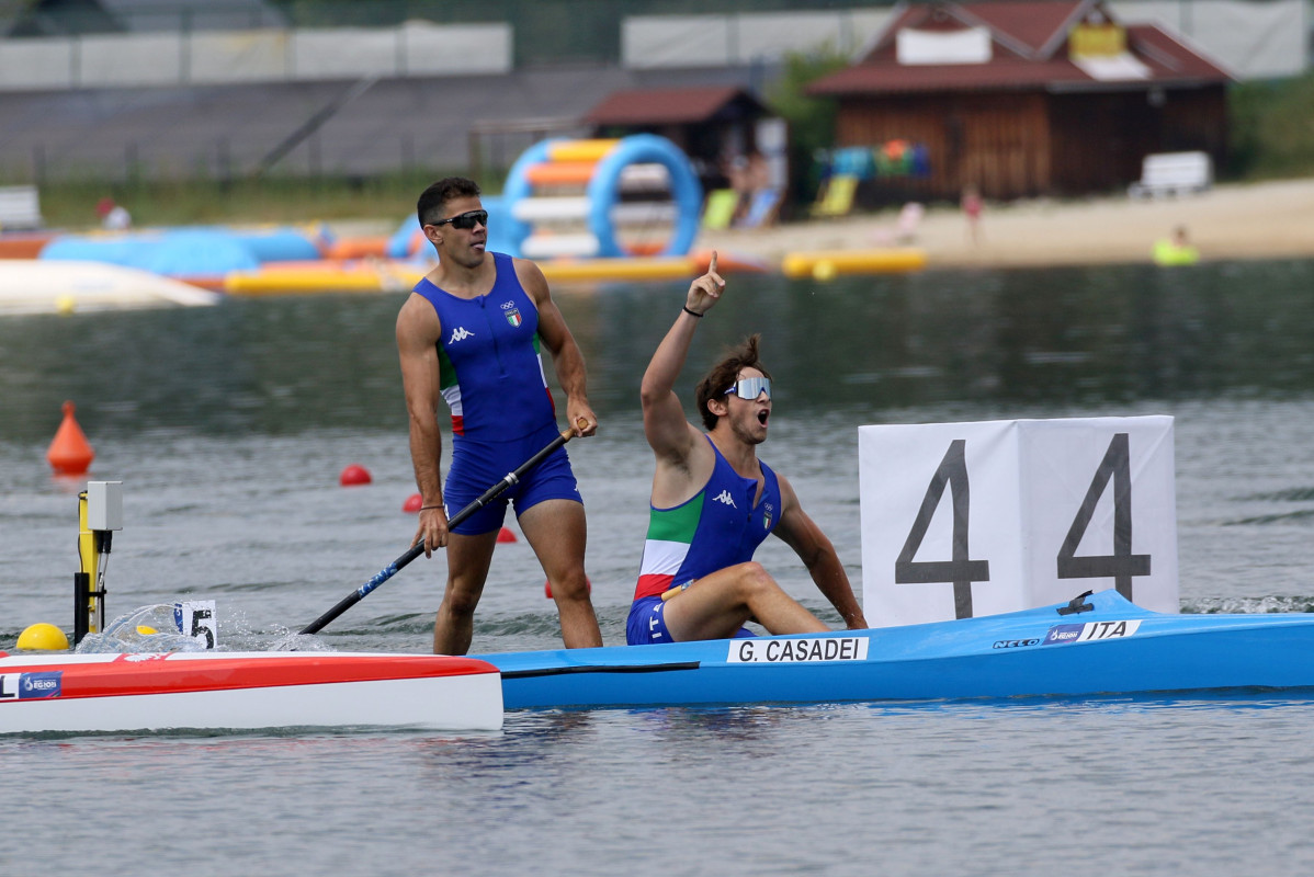 The Italians Gabriele Casadei and Carlo Tacchini triumphed in men’s Canadian Double 500 metres race. The Italian duo managed to gain momentum in the middle of the race and to take over the lead in the race from the reigning world champions Cayetano Garcia (ESP) and Pablo Martinez (ESP) who finished second.