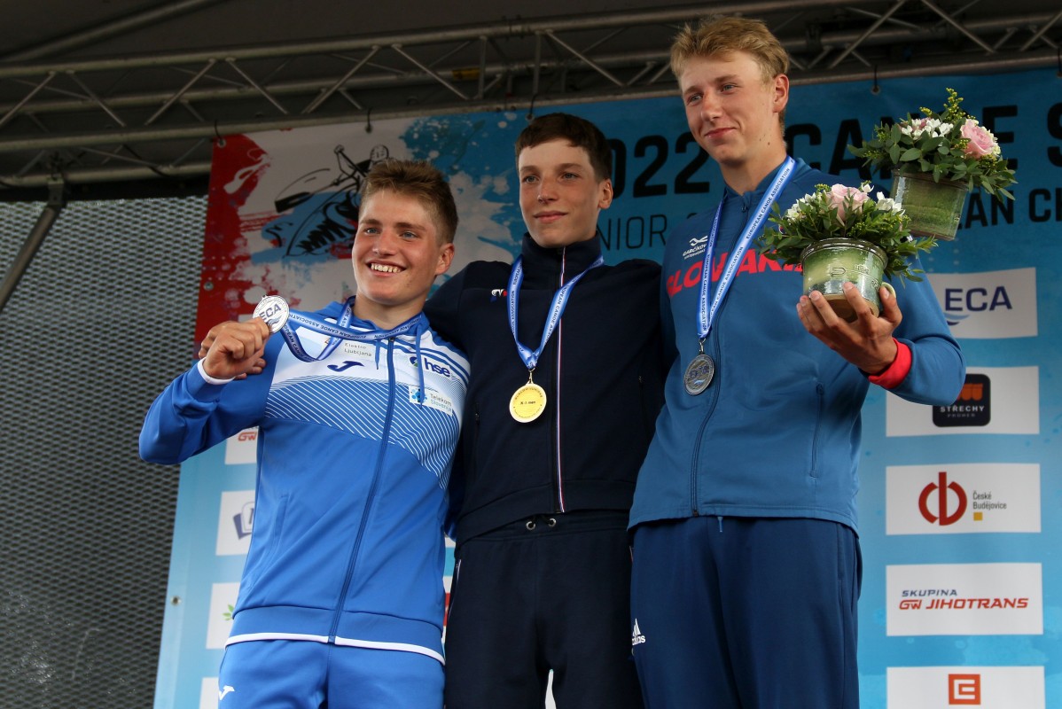15-year-old Ziga Lin Hocevar from Slovenia finished second, winning his third medal of this championships in his debut international season. In the previous two days, he won two team gold medals in junior kayak team event and U23 canoe team event. Richard Rumansky from Slovakia was third.