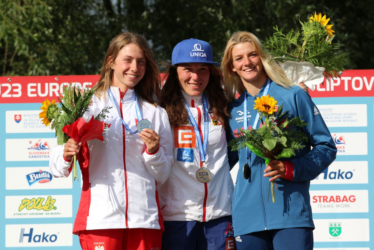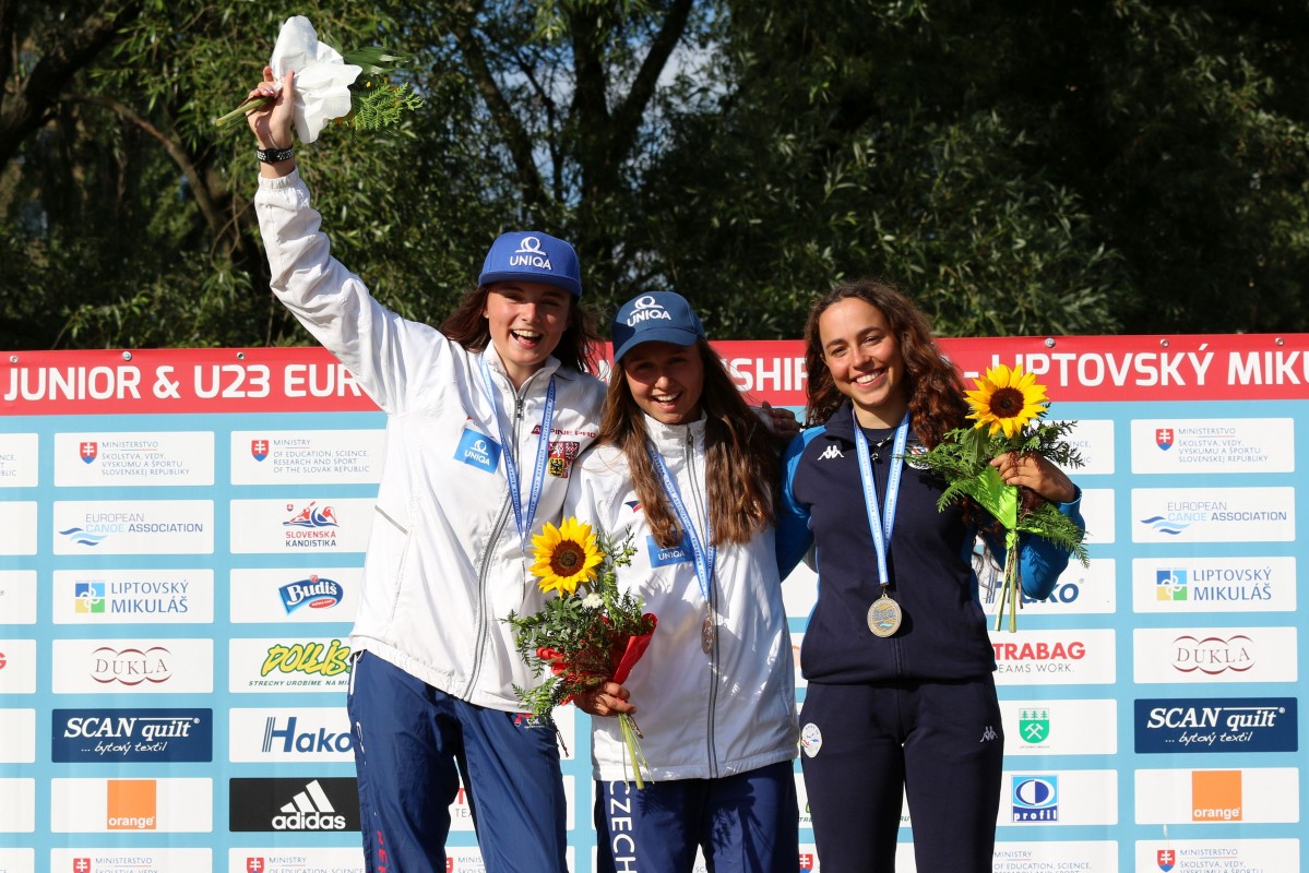 Czech anthem played twice on Saturday. First Tereza Fišerova, who has had much international success already in senior category especially in women's C1, won the European Champion title in women's kayak U23 event, and in the last final of the day Katerina Bekova claimed the second gold medal of the day for Czech Republic in junior women's kayak event. Klaudia Zwolinska from Poland was second and Slovak paddler Eliška Mintalova third in U23 final, while Antonie Galuškova from Czech Republic and Italian kayaker Francesca Malaguti reached the winners podium in junior event.