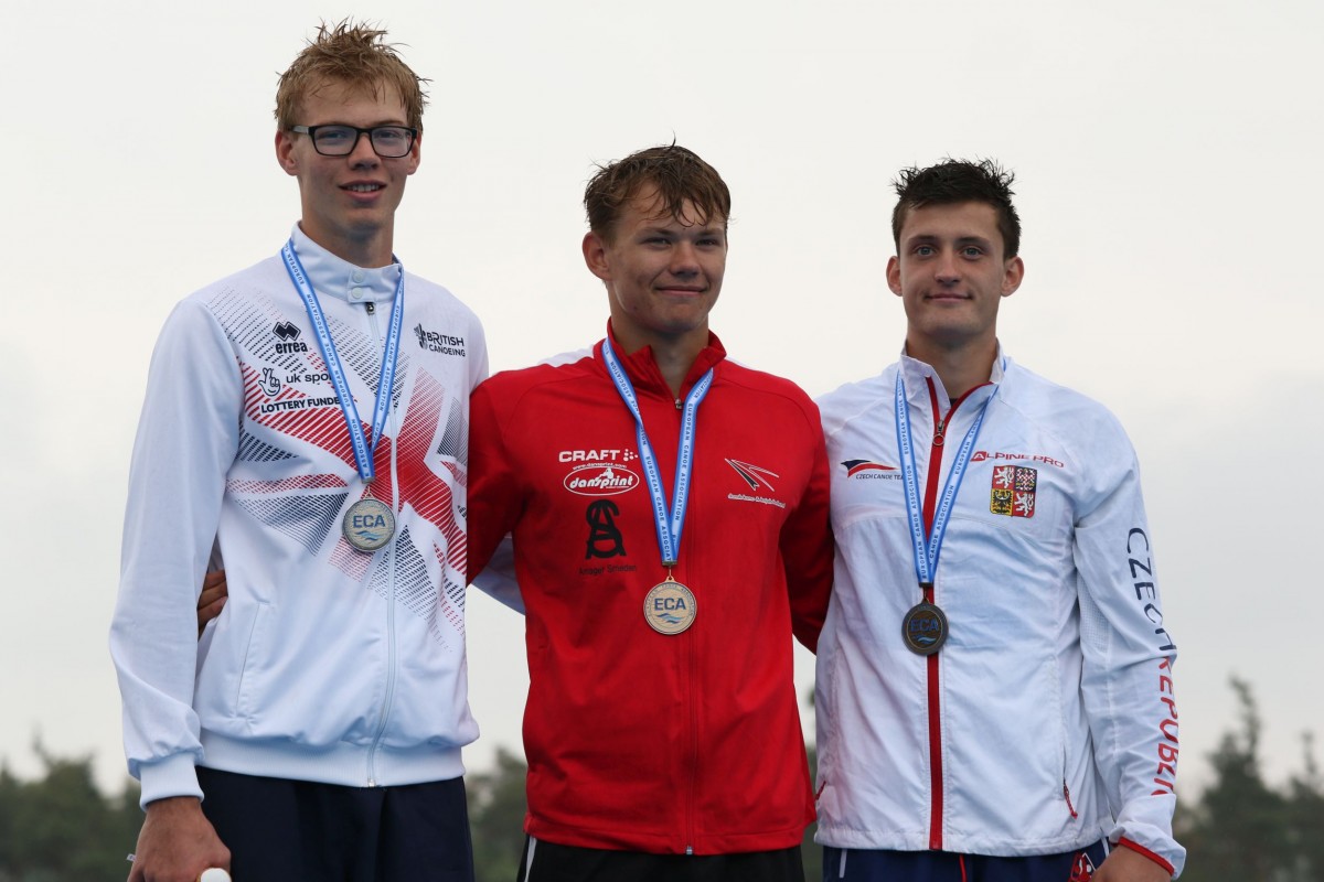 The first gold medal of the day went to Denmark thanks to Magnus Sibbersen who was the fastest in junior men's K1 1000 metres A final. He succeeded his compatriot Rasmus Knudsen who won in this event at last year's Junior and U23 Canoe Sprint European Championships that was held in Auronzo di Cadore. Philip Miles from Great Britain was second and Tomaš Sobišek from Czech Republic third.