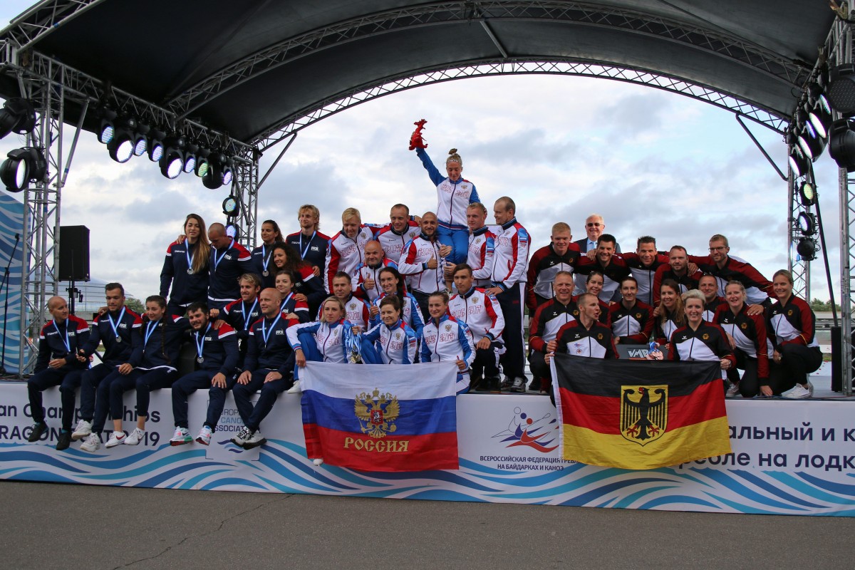 Russian, Romanian and German national teams reached the top podium positions during the third competition day of the 2019 ECA Dragon Boat Nations and Clubs European Championships and European Cup in Moscow, Russia.
