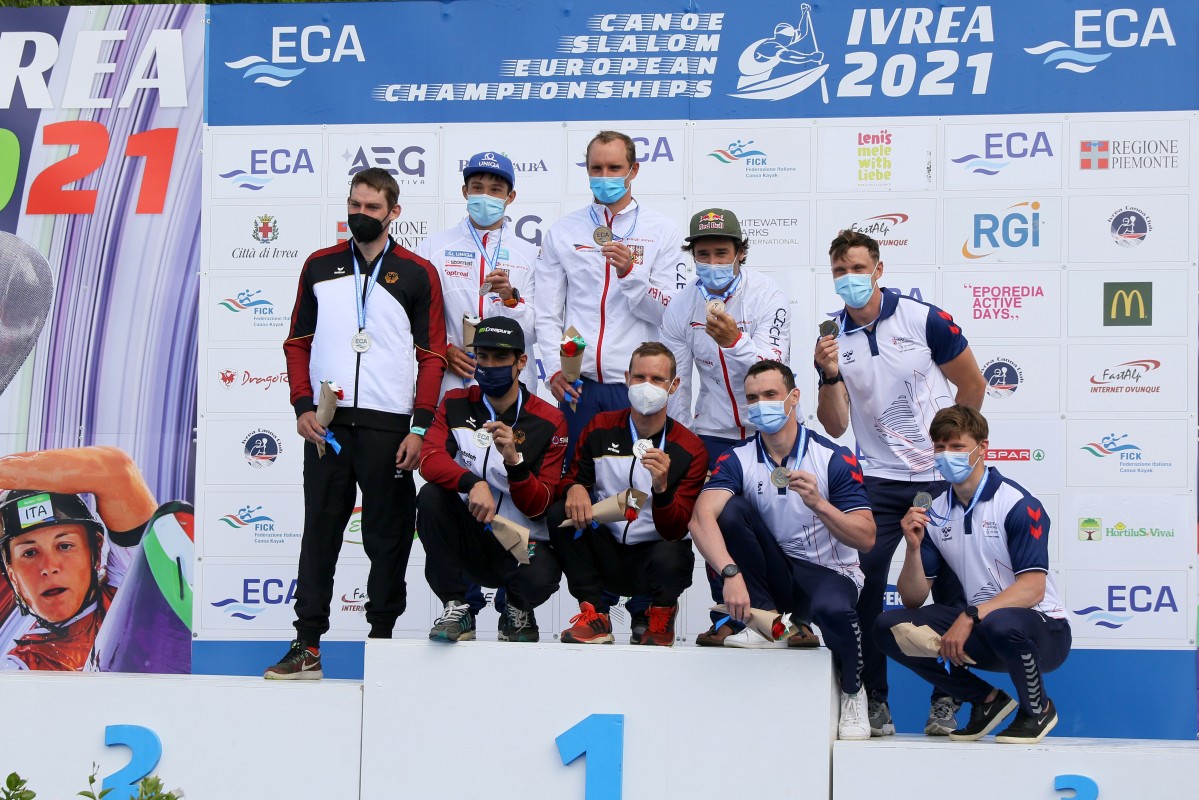 The celebration of the first medal was not yet over when the British men's kayak team picked up bronze medal. Joe Clarke, Bradley Forbes-Cryans and Christopher Bowers were third, 2.31 seconds behind the winning team. Jiri Prskavec, Vavrinec Hradilek and Vit Prindiš were the ones who celebrated European Champion title, ahead of Germany with Hannes Aigner, Tim Maxeiner and Stefan Hengst finishing second.