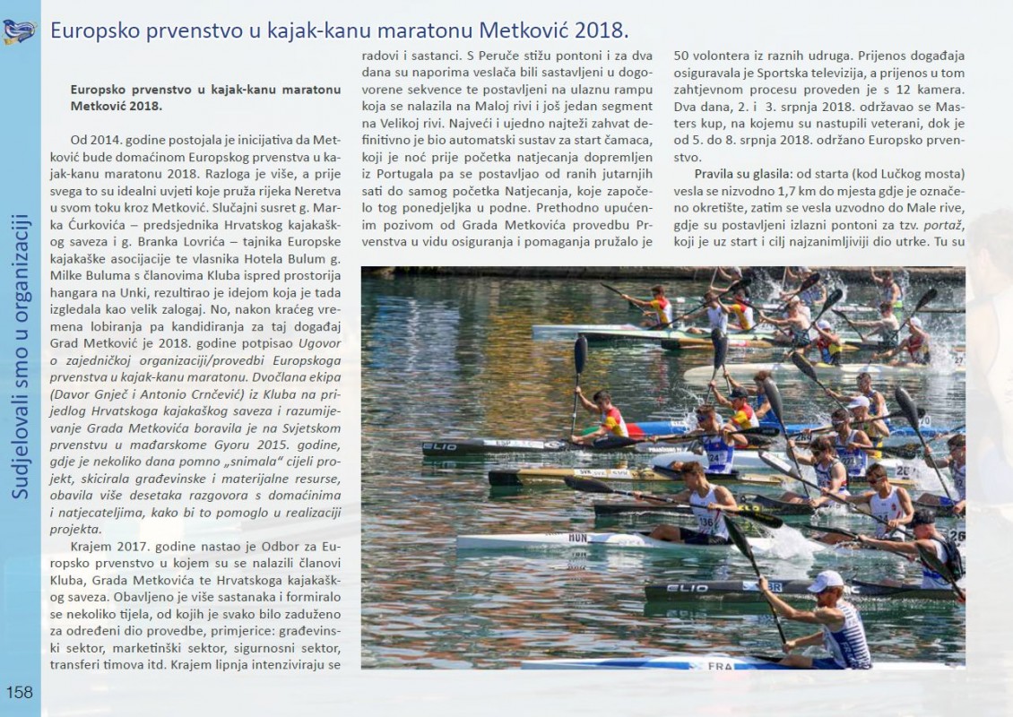 The 2018 ECA Canoe Marathon European Championships is featured in monograph “Our first half century” which celebrates 50 years of rowing club Neretvanski gusar. Members of the local club in Metković, Croatia, were the driving force of the organisation of this year’s European Championships on Neretva River.